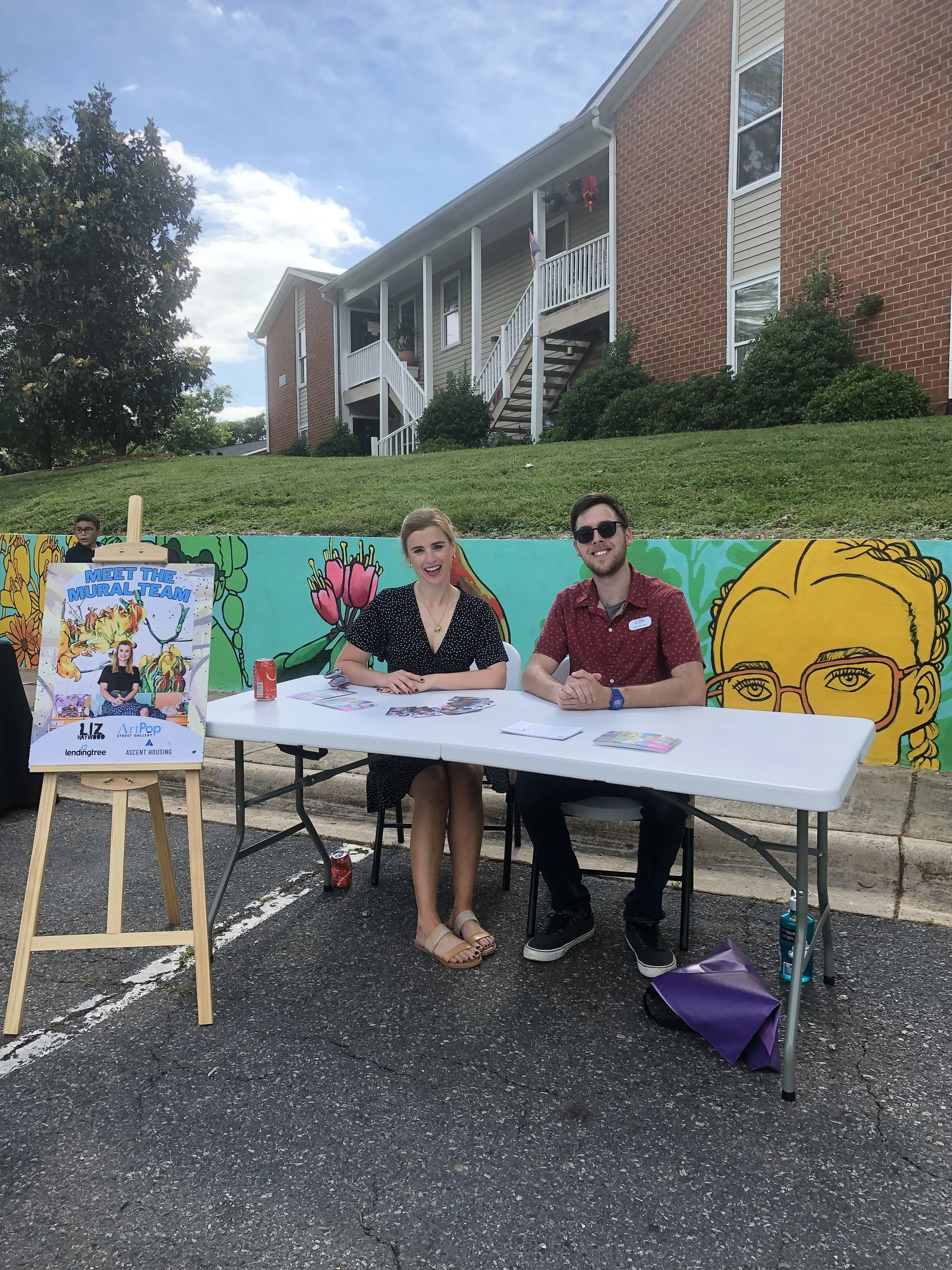 Liz and the ArtPop team had the opportunity to join the Lake Mist residents at another Community Engagement Event, where we celebrated the completion of the mural! Stationed directly in front of the now-beautified retaining wall, Liz and the ArtPop team spoke with community members, who offered overwhelming positive feedback and appreciation. One resident shared, “We needed this. We really needed this.”