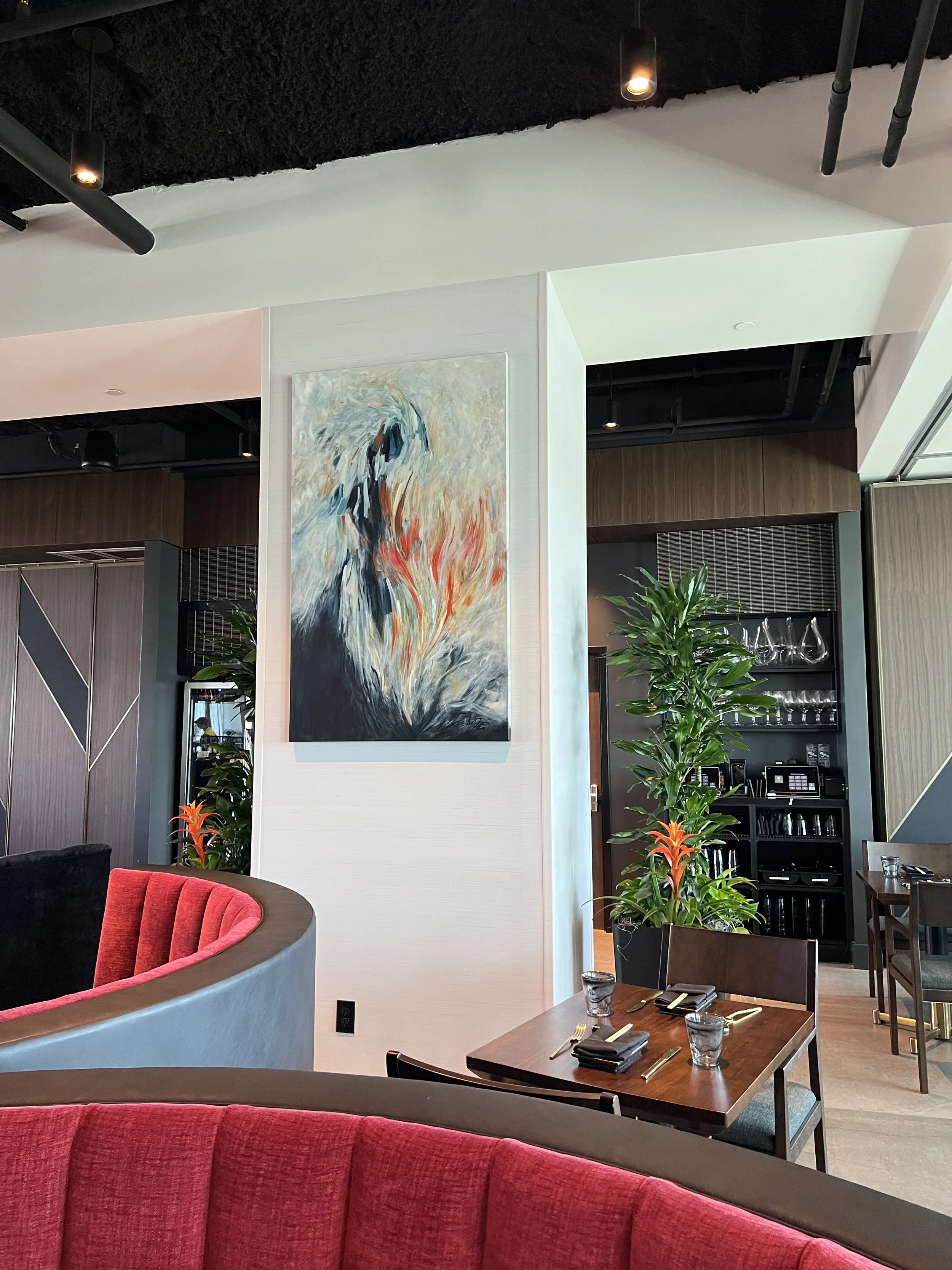 Mary Zio’s painting in the Hestia Rooftop Restaurant.